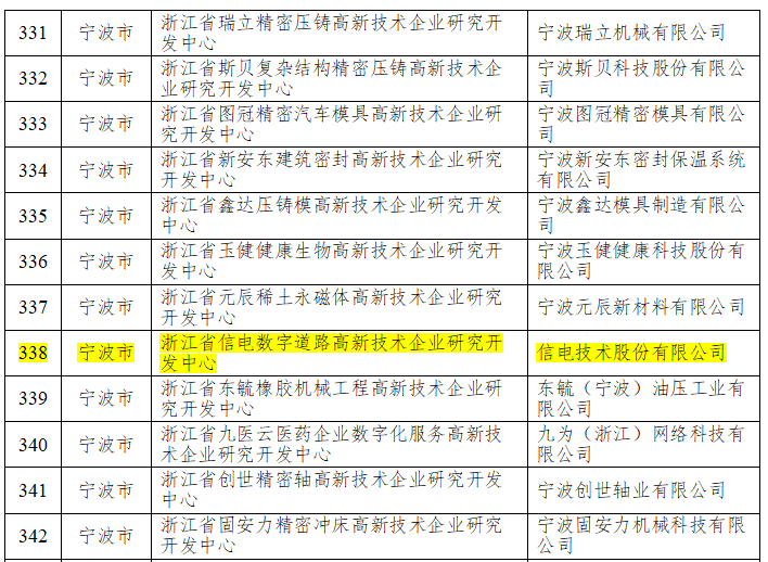公司在2022年被浙江省发改委授予“数字道路建设技术浙江省工程研究中心”基础上,今年“浙江省信电数字道路高新技术企业研究开发中心”又被浙江省经济和信息化厅认定为省级企业研发机构。
